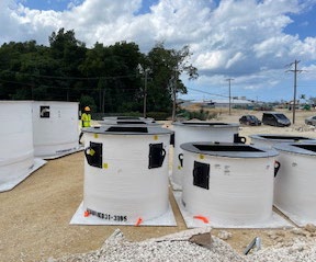The CF Series of Wastewater Treatment tanks are constructed with fiberglass, non-corrosive tanks, along with PVC 40/80 piping, making them suitable for high groundwater environments.